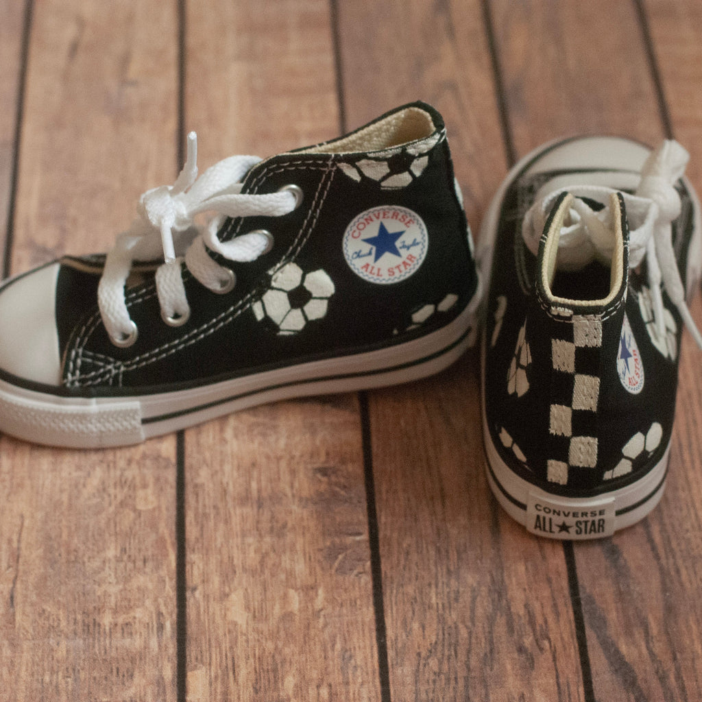 These Soccer High Top Converse are hand-painted with care, bringing bold, sporty energy to a classic sneaker. Each pair is created by hand — every brushstroke is unique — and sealed for durability, so they’re ready for everyday wear, team events, or showing off your love for the game in style.